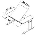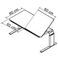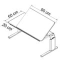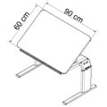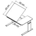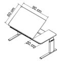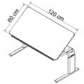 - Table top: 90 x 60 or 120 x 60cm, rounded corners, various types (see below), tilt adjustable up to 71° and magnetic (types B to G)